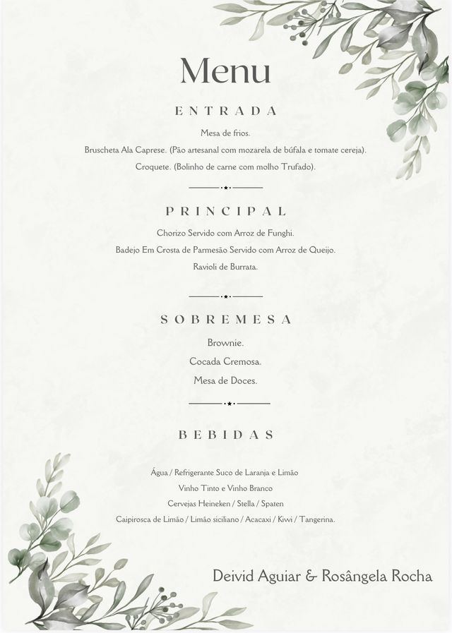 Cardápio do nosso jantar comemorativo